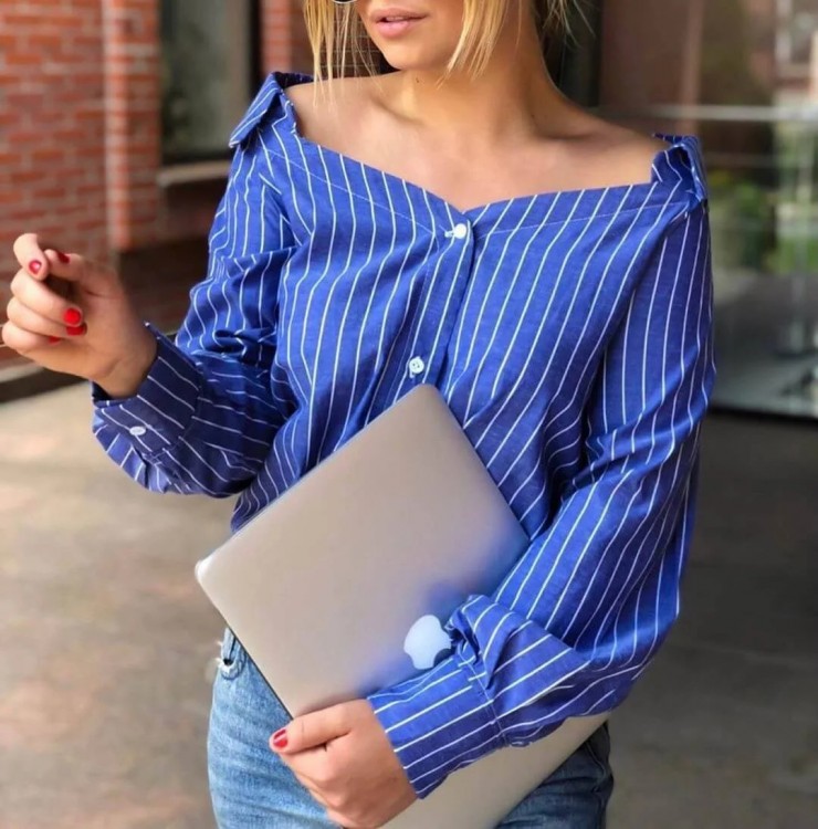 Речі з відкритими плечима вже заполонили вітрини магазинів, сорочки не стали винятком. Такі варіанти допоможуть акцентувати увагу оточуючих на ключицях і шиї. Тим самим ви зможете показати себе витонченою жінкою.