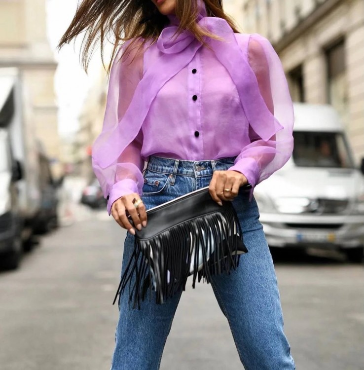 Поєднання досить незвичайної сорочки зі звичними штанами або спідницею створить яскравий образ.