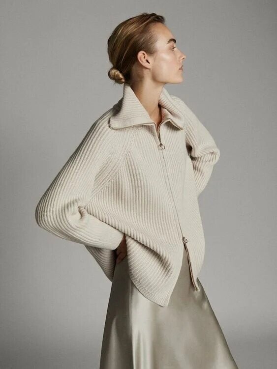 В тренді вільні светри з розрізом на стегні. Виглядають вони дуже стильно і ефектно.
