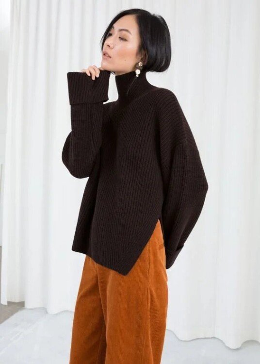 Найбільш універсальний варіант. Якщо у вас високий зріст – ви можете комбінувати такий светр з чим завгодно.