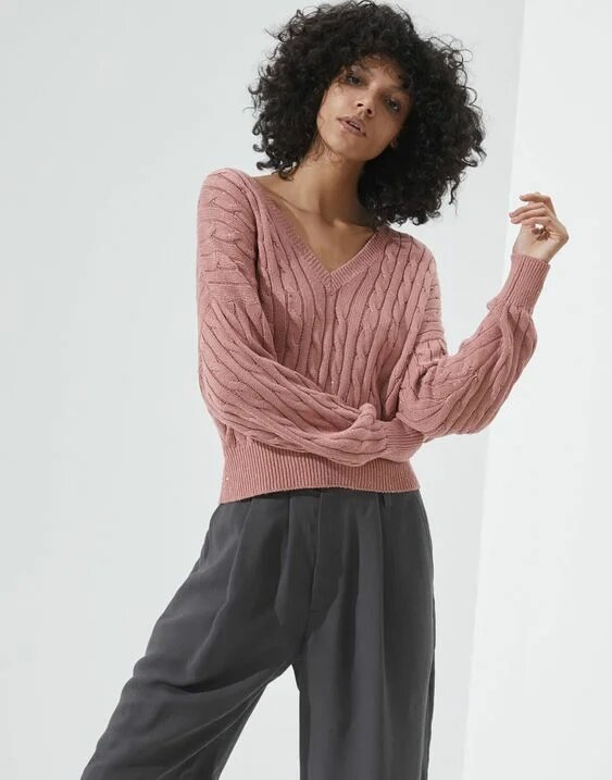 Носити светри оверсайз можна з будь-яким варіантом низу: брюками, спідницями, джинсами, легінсами, сукнями в білизняному стилі.