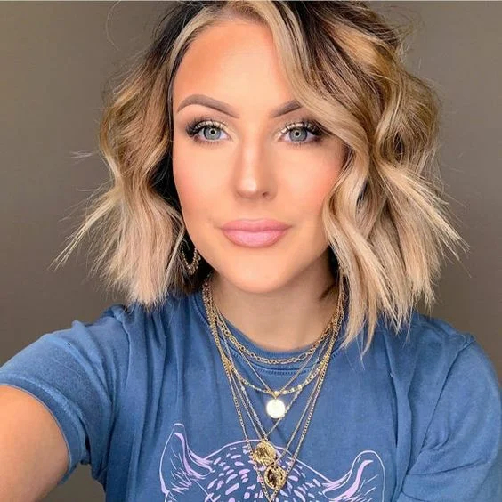 Прекрасний хвилястий боб! Світлі пасма роблять волосся об’ємнішим і густішим, колір відмінно розкривається в цьому укладанні.