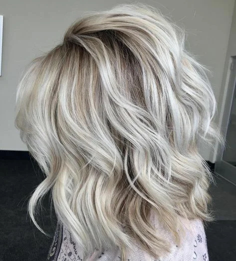 Попелясто-ліловий відтінок сьогодні в моді. Він добре лягає на блонд, натуральне світле волосся і на локони русявих відтінків. Темні корінці при цьому додають волоссю більш натурального вигляду.