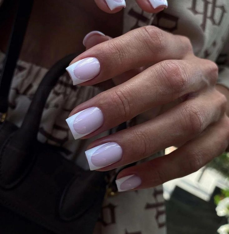 Класичний френч-манікюр із акцентом на кінчиках нігтів. Експериментуйте з різними кольорами та текстурами, додайте золоті або срібні смужки для елегантного та сучасного образу.
