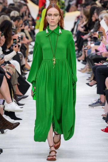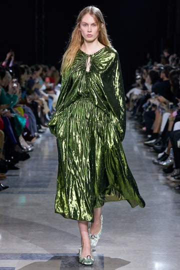 Один з найбільш надихаючих трендів сезону, який ми помітили на подіумах під час Тижнів моди, – романтичні сукні відтінків свіжої трави, хвойних голок, листочків м’яти і в цілому цвітіння. Ми вже розповідали вам, що серед головних тенденцій сезону також засвітився тропічний принт, але якщо ви шукайте щось більш стримане, радимо вибирати саме такі зелені сукні.