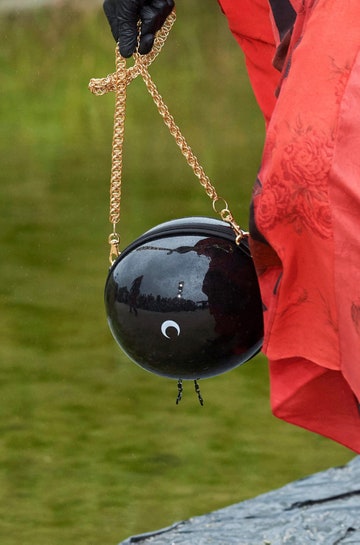 А в цьому теплому сезоні ми офіційно готові назвати лаконічну сферу найбажанішим аксесуаром сезону. Marine Serre зробили кулю із пластику, доповненою ручкою у вигляді масивного ланцюга – він став головним елементом модних луків на паризькому шоу марки. А Cult Gaia і Simone Rocha створили схожі моделі, що нагадують гігантські перлини. Радимо взяти сумку на олівчик майбутнім нареченим.