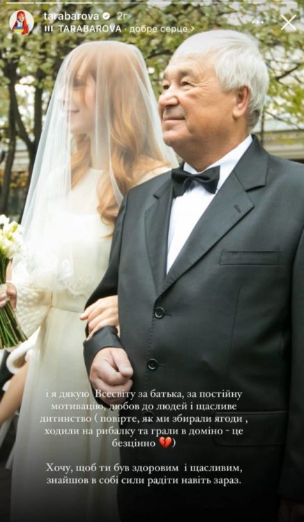 “У нас сьогодні свято в родині: моєму татові 70 років. Я дякую Всесвіту за батька, за постійну мотивацію, любов до людей і щасливе дитинство. Повірте, як ми збирали ягоди, ходили на рибалку та грали в доміно – це безцінно. Хочу, щоб ти був здоровим і щасливим, знайшов в собі сили радіти навіть зараз”, – прокоментувала фото Світлана Тарабарова.