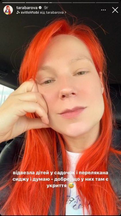 Після неспокійної ночі співачка відвезла дітей до садочка. Світлана Тарабарова заявила, що у закладі є укриття. За словами зірки українського шоу-бізнесу, під час повітряної тривоги вихователі відводять дітей в безпечне місце. “Відвезла дітей до садочка, і перелякана сиджу і думаю: добре, що у них там є укриття”, – відверто поділилась Світлана Тарабарова.