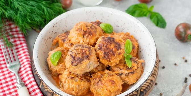 М’ясні тефтелі з картоплею у сметанно-томатному соусі