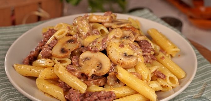 Страва проста та швидка у приготуванні. Для неї знадобиться небагато інгредієнтів. Макарони з фаршем, грибами та сиром точно сподобаються Вашим рідним. Страва апетитна на вигляд та смачна.