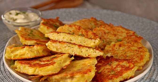 Якщо Ви полюбляєте страви з сиру, то обов’язково приготуйте ці оладки. Страва на сніданок виходить дуже смачною та ситною. Сирні оладки з часником та зеленню нереально апетитні на вигляд та ситні.