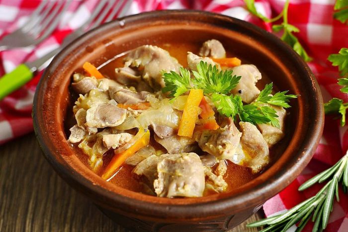 Тушковані курячі шлуночки у вершково-цибулевому соусі