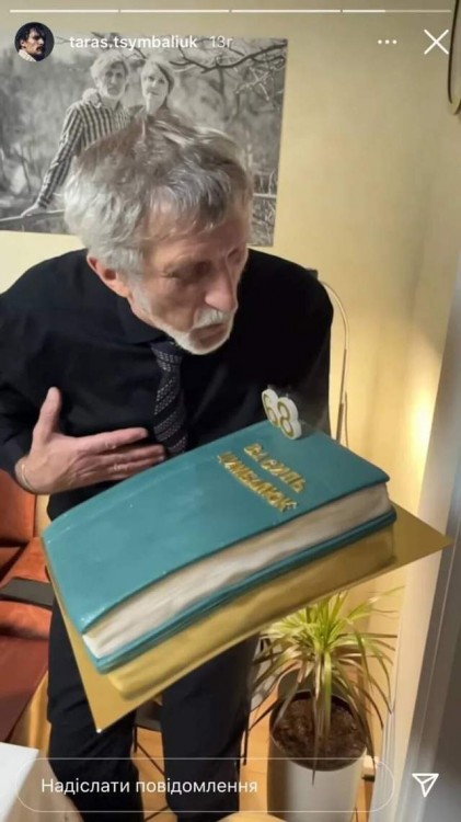 Тарас Цимбалюк вручив рідній людині святковий торт у вигляді книги. Схоже, що батько актора неабияк оцінив такий подарунок. Він із задоволенням задув свічки на святковому торті. До щирих привітань відразу долучилась чимала кількість фоловерів.