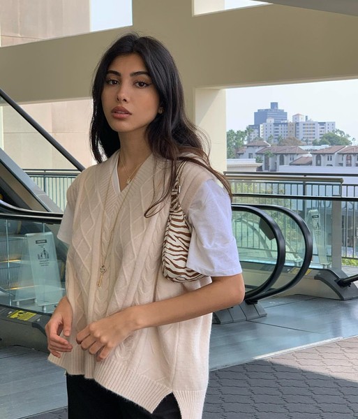 Цей елемент одягу вже давно не покидає трендів. Руслана Джі продемонструвала, як стилізувати ніжно-бежевий жилет із звичайною білою футболкою, чорними брюками та грубими черевиками.