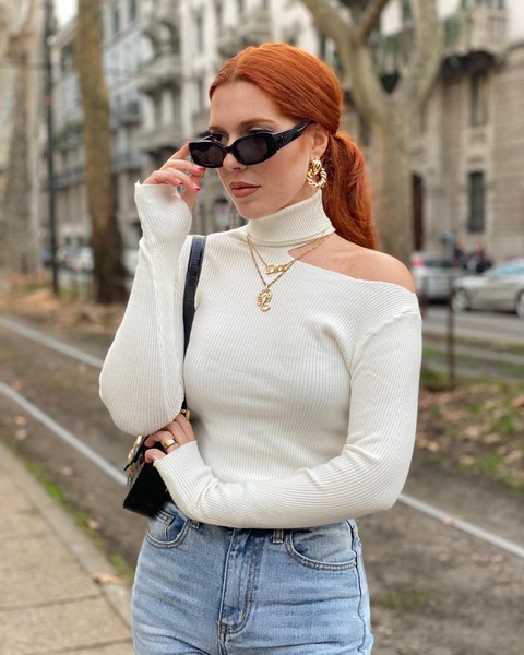 Вирізи – деталі, що роблять образ цікавішим і складнішим. Якщо вам ліньки зранку вигадувати аутфіт але родзинки додати хочеться, то такий джемпер – ідеальний вихід із ситуації. Фотографія є доказом цього: здавалося б, нічого особливого в образі немає але милий виріз светра і аксесуари забезпечили цьому образу успіх.