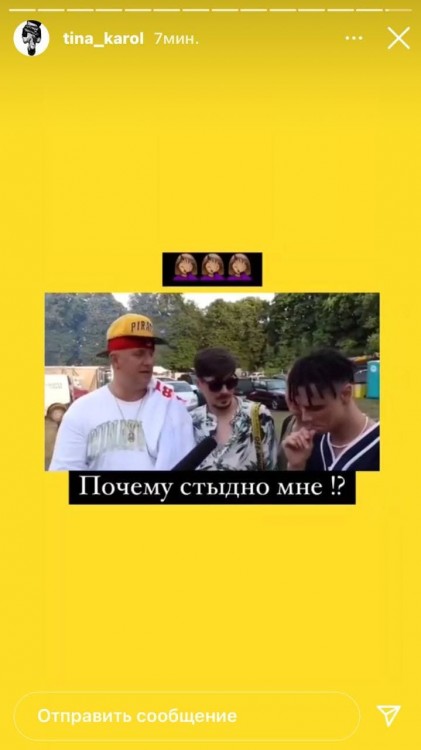 Річ в тому, що перед виступом Muzvar запитав в репера, як він ставиться до того, що хедлайнером стала Тіна Кароль. Однак, Потап та інші учасники гурту “MOZGI” відповіли, що не знають, хто це. Також вони почали римувати ім’я Тіни Кароль з дивними словами.