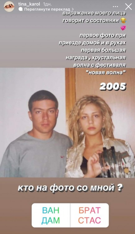 На цей раз Тіна Кароль вирішила потішити фоловерів рідкісним фото, на якому позує зі своїм братом. Кадр артистка опублікувала в Instagram-stories. Також Тіна Кароль зізналась, що фото було зроблено 16 років тому.