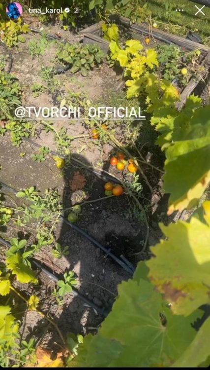 “Обіцяла гурту TVORCHI розповісти про свій город і відзвітувати. Ось мої помідори, там кабачки, є чудовий перець, який чекає, коли його зірвуть, і капуста”, – розповіла Тіна Кароль.