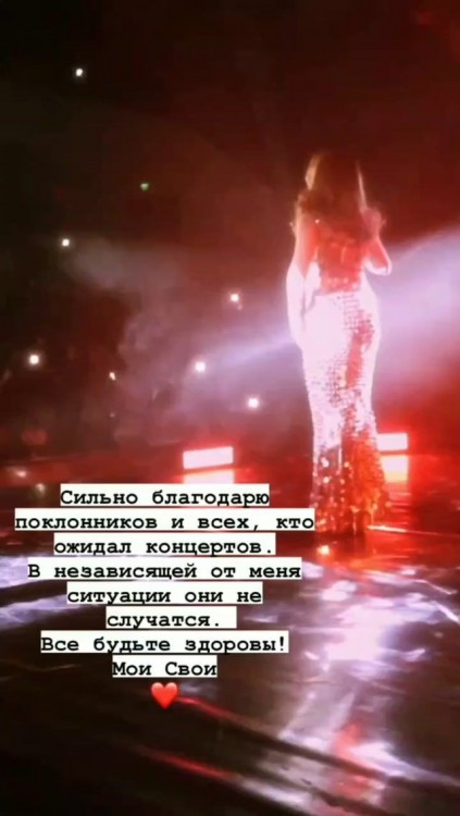 У своїх соцмережах Тіна Кароль заявила, що змушена скасувати всі виступи. В Instagram-story жінка опублікувала всю інформацію й побажала фанам міцного здоров’я.
