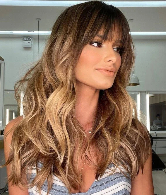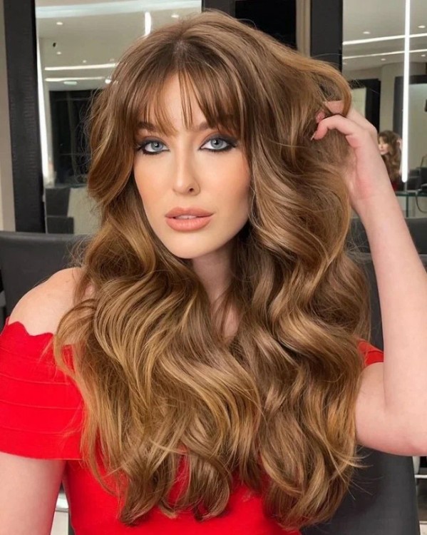 Тонкі чубчики підходять абсолютно будь-якій довжині волосся. Якщо ви володарка довгої шевелюри, правильним рішенням буде накрутити її на велику плойку і злегка наскубити чубчик кінчиками пальців – вийде святковий варіант зачіски.