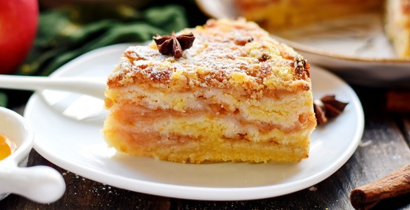 Яблучний пиріг виходить смачним та апетитним. Найбільше такий десерт полюбляють діти. До столу він подається з гарячими напоями.