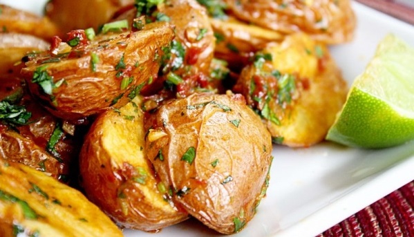 Картопля виходить дуже смачною та апетитною. Вона має чудову скоринку й відмінно смакує з будь-яким соусом. У приготуванні запеченої картоплі немає нічого складного.