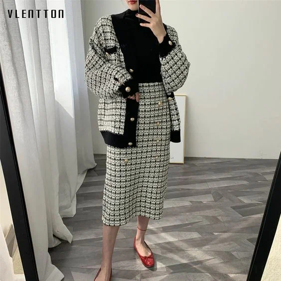 Наступний актуальний тренд, які модниці вибирають для своїх феєричних образів – це твідові, як міні, так і максі спідниці прямого фасону. Цей шикарний виріб може бути прикрашений контрастними золотими гудзиками або шкіряним ременем. В даному випадку доречно буде комбінувати твідові спідниці з трендовими кардиганами, а також однотонним водолазками в дрібний рубчик.