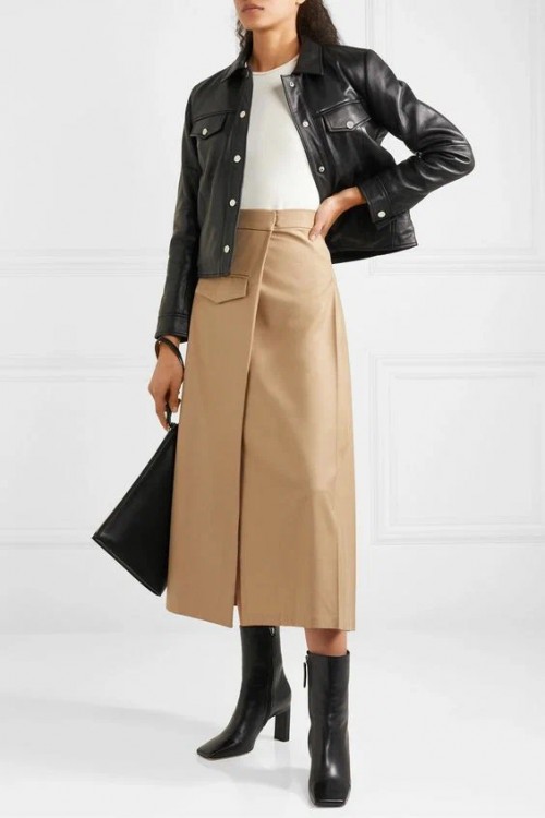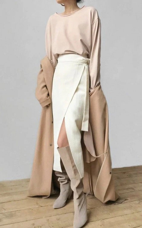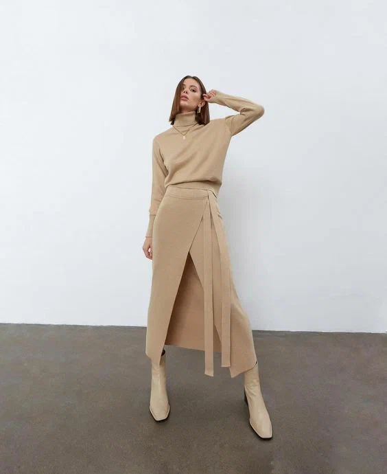 Ефектні довгі спідниці на запах у мінімалістичному виконанні в нейтральній базовій палітрі – це саме те, що необхідно холодною погодою, щоб виглядати жіночно і, при цьому, не мерзнути. Насамперед, моделі на запах модниці люблять за їхній вдалий крій, який здатний під собою приховати найменші недоліки і одночасно підкреслити переваги жіночої фігури. Чудовим доповненням до довгих спідниць на запах стануть високі чоботи на підборах, водолазка чи лонгслів, а також класичне пальто чи куртка-косуха.