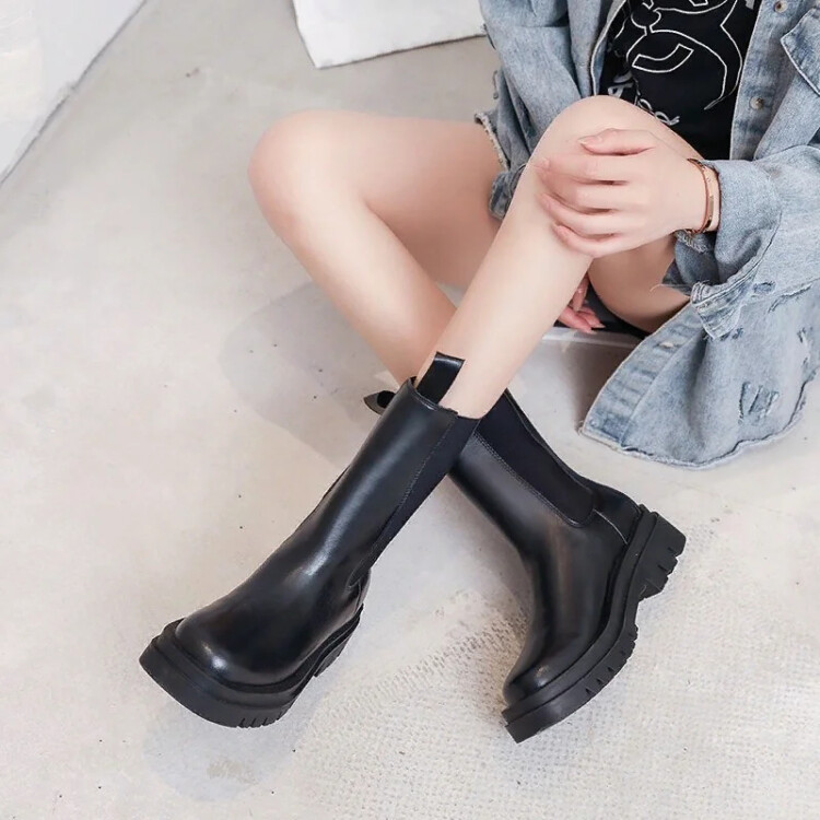 Це, звичайно, вже не чоботи, вони трохи нижчі, але теж можуть бути заввишки до ікри. І, знову ж таки, у них вузька посадка по щиколотці і вище по нозі і масивна важка платформа. Якраз ця груба платформа компенсується вузькою посадкою по щиколотці. Такі черевики гарно підходять для тих, хто віддає перевагу штанам, джинсам, бо позначення цієї вузької щиколотки завжди виглядає компліментарно для будь-якої форми ноги.