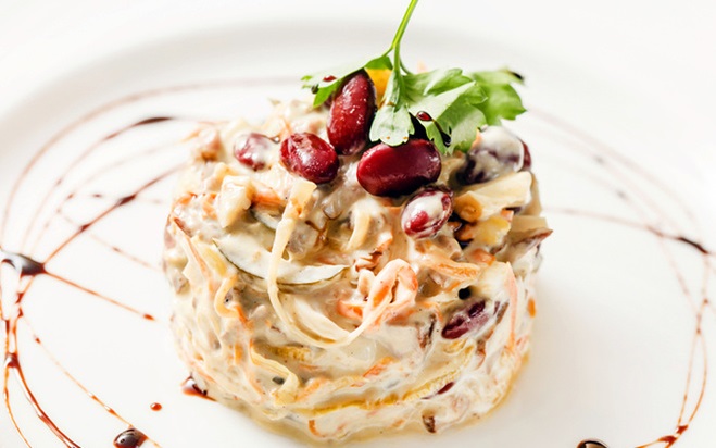 Такий салат можна подавати до святкового столу, адже він дуже смачний та апетитний на вигляд. Страва складається з простих інгредієнтів та швидка у приготуванні. Салат з куркою та червоною квасолею корисний та ситний.