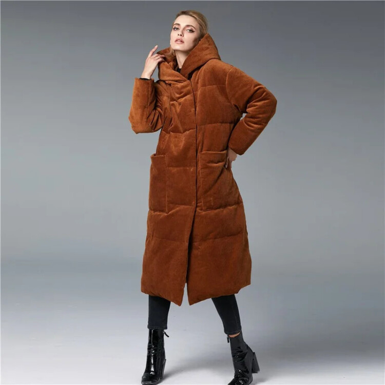 Модні тенденції дуже суттєво торкнулися фактури пуховиків. В тренді цієї зими вельветові моделі. Волокна тканини надають образу унікальності, подивіться як гарно виглядає ця модель.