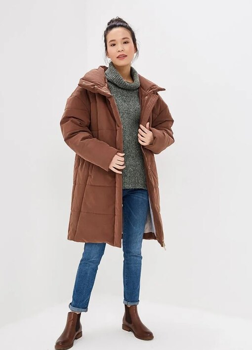 Вільні безформні силуети особливо популярні в категорії верхнього одягу. У куртці оверсайз ви не тільки будете модно виглядати, а й зможете одягнути два-три шари одягу під неї і не відчувати при цьому скутості в рухах. Щоб образ не вийшов занадто безформним, розставте акценти за допомогою взуття та фактурної сумки.