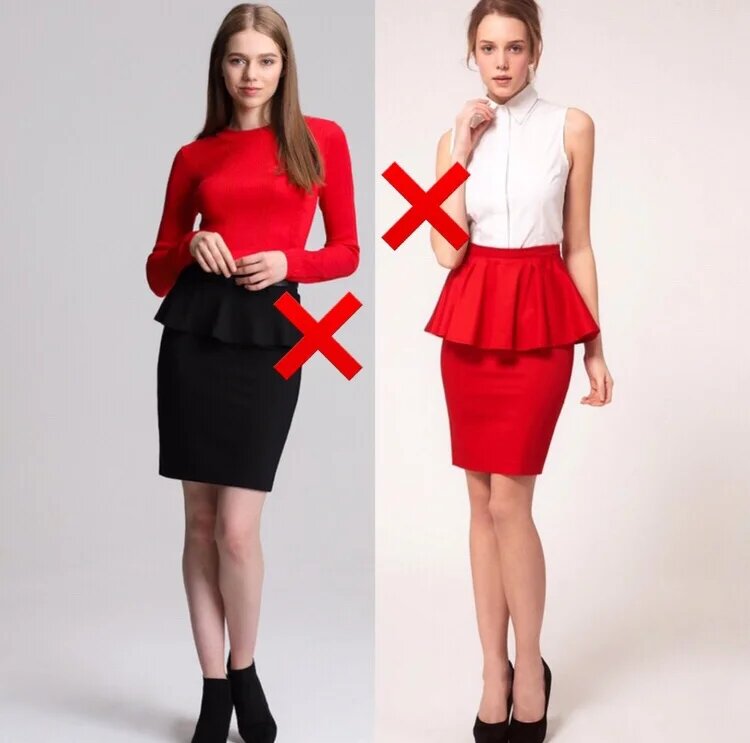 Тонка приталена спідниця повинна покинути вашу шафу, принаймні у цьому сезоні. Така модель вигідно підкреслює усі недоліки фігури, збирається в складки і дуже часто просвічує.
