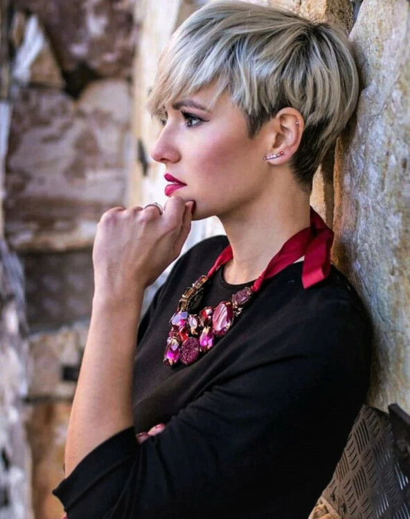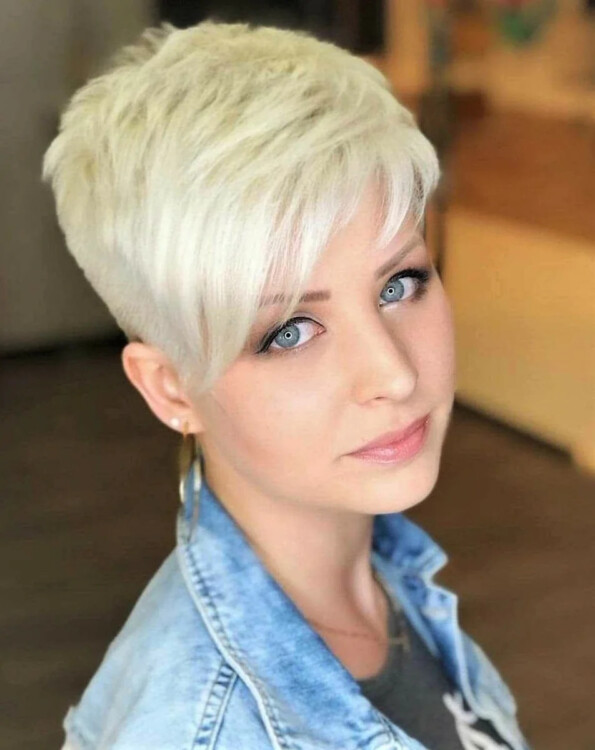 Розкішна і приваблива піксі не залишить байдужою жодну жінку. Саме варіант в поєднанні з довгим чубчиком вважається найчарівнішим. До того ж стрижка відмінно омолоджує, що робить її ще більш привабливою.