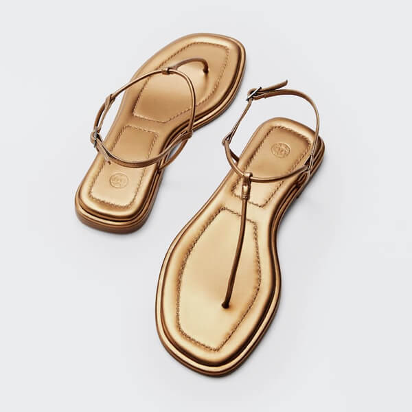 Не тенденція, а скоріше класика, яку краще розгледіти вчасно і зробити частиною вашого літнього базового гардеробу. Золоте відкрите взуття постійно з’являється у весняно-літніх колекціях, а виглядає ошатно і благородно. Таку пару, гідну давньогрецьких богів, хочеться порадити особливо тим, хто віддає перевагу натуральним і стриманим кольорам педикюру, адже блиск і яскравий колір поруч – це вже занадто.