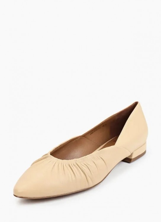 Якщо ви шукаєте ідеальні балетки, вибирайте гостроносі моделі бежевого кольору. Вони візуально подовжать ноги і органічно доповнять повсякденні луки.