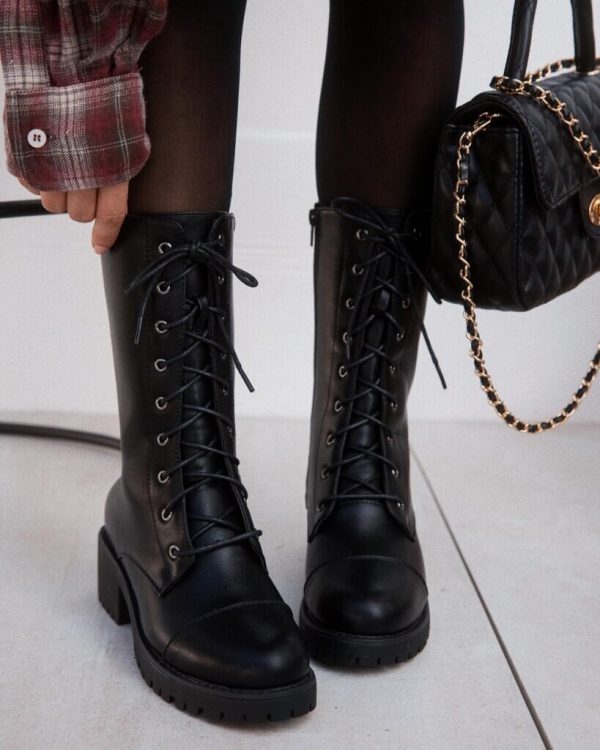 Класичним варіантом, незмінно актуальним і базовим, можна вважати чорні черевики на зручних підборах зі шнурівкою, довжина яких може бути різною, починаючи від середини щиколотки і закінчуючи серединою гомілки.