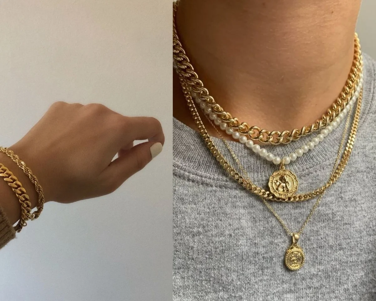 Як можна зробити зі звичайних базових прикрас модний тренд? Просто одягніть кілька прикрас відразу. Особливо модно буде виглядати, якщо ви одягнете одночасно тонкі і масивні ланцюги.