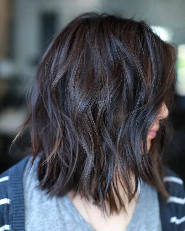 Рваний довгий боб передбачає рівний зріз і трішки різнорівневих пасом, щоб отримати легку недбалість при укладанні. Але не бійтеся – волосся не буде виглядати безглуздо.