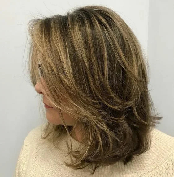 Стрижка шарами-пір’ям трішки нижче плечей актуальна і донині. Вона особливо підходить жінкам більш зрілого віку через свою легкість, універсальність і легкість.