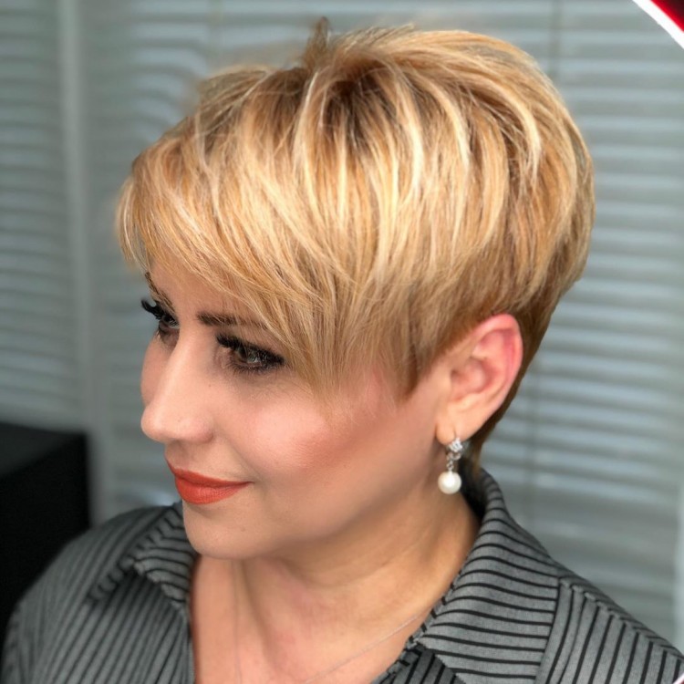 Дуже популярна зачіска, яка не має будь-яких вікових обмежень. Ця стрижка передбачає наявність укорочених пасм на потилиці і подовжених на маківці. У випадку, якщо у вас пряме і тонке волосся, така стрижка на вас чудово виглядатиме. Якщо ж ви – володарка густої шевелюри, вибирайте піксі з багатошаровим подовженим чубчиком.