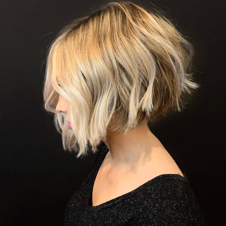 Такий варіант стрижки підійде сміливій та ризикованій дівчині. Перехід від довгих пасм до коротких може бути як плавним, так і різким. Градуйований боб чудово виглядатиме, якщо у вас тонке і ослаблене волосся. Крім цього, така зачіска надає об’єму волоссю і не вимагає особливих проблем з укладанням. Просто висушіть локони за допомогою фена і нанесіть трохи мусу. Після цього необхідно лише злегка скуйовдити волосся. Якщо у вас неідеальні пропорції обличчя, вибирайте боб з подовженим косим чубчиком. Таким чином ви зможете приховати всі недоліки.