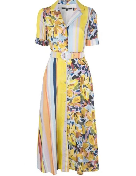 Модель з характером виконана з натуральної тканини у кольорі колорблок. Родзинкою сучасних бавовняних суконь є широкі пояси, завдяки яким контур жіночого тіла набуває «м’яких» і плавних переходів. Влітку, звичайно ж, доречно купувати моделі з короткими рукавами.