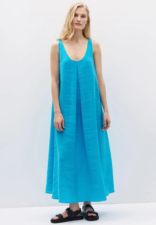 Якщо хочете бути в центрі уваги, вибирайте яскраво-блакитний сарафан. Вільний крій, легкий матеріал – те, що потрібно на літо!
