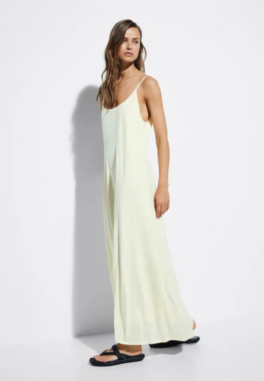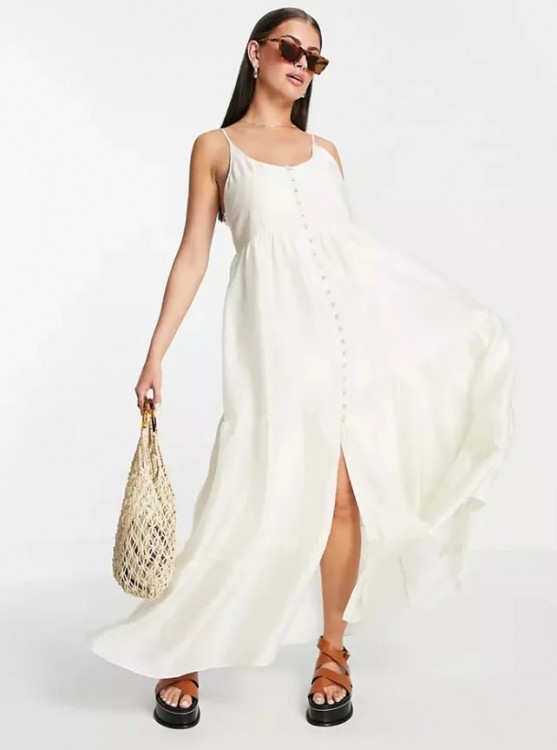 Ніжна кремова сукня-комбінація легко впишеться як в повсякденні, так і в вечірні образи. У першому випадку її можна носити з сандалями і плетеною сумкою, в другому – з витонченими босоніжками і фактурним клатчем.