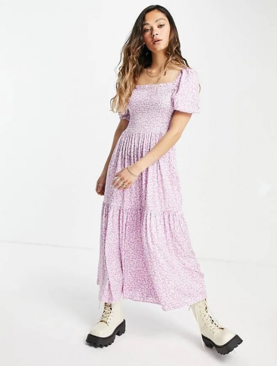 Хіт сезону – сукня в квіточку з квадратним вирізом і об’ємними рукавами. Дуже добре виглядає і з кросівками, і з акуратними босоніжками, і з комфортними сандалями.