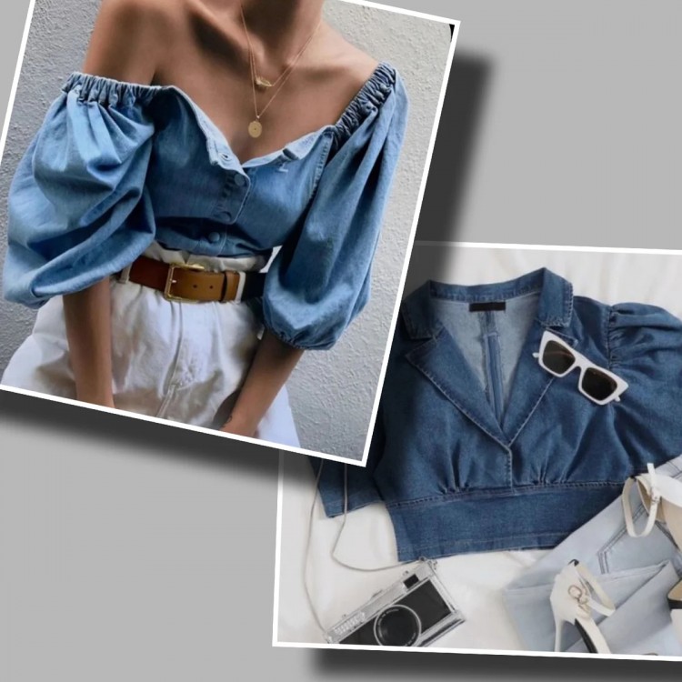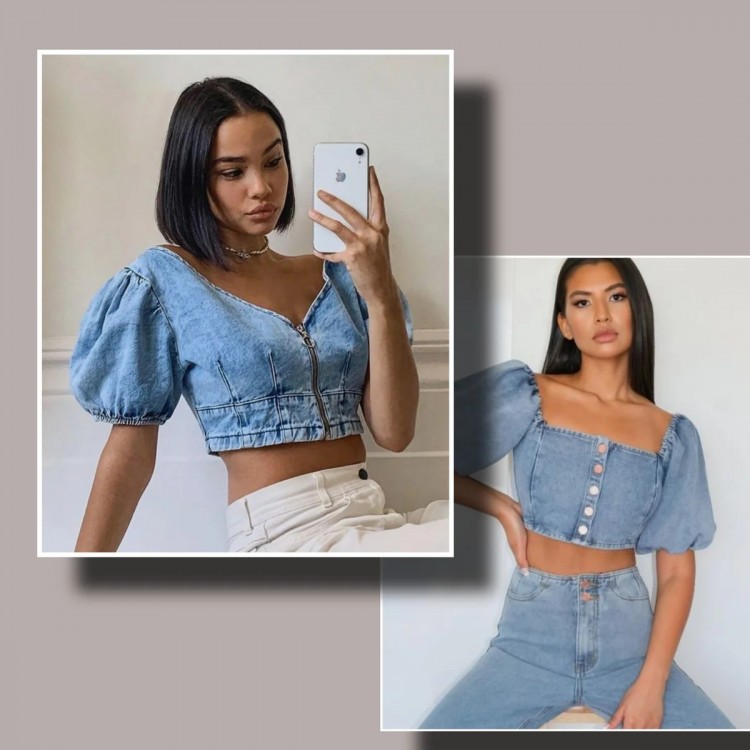 Є і класичні варіанти джинсових топів з широкими бретелями. У них у вас будуть повністю відкриті руки.