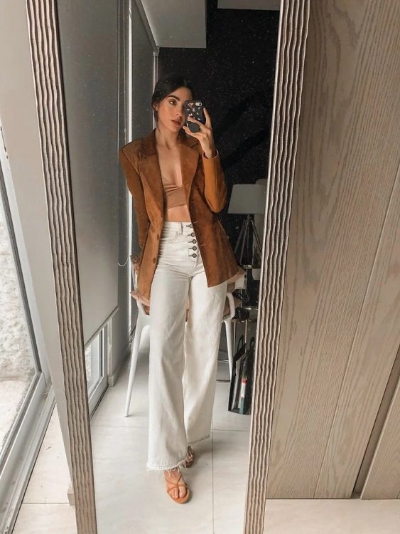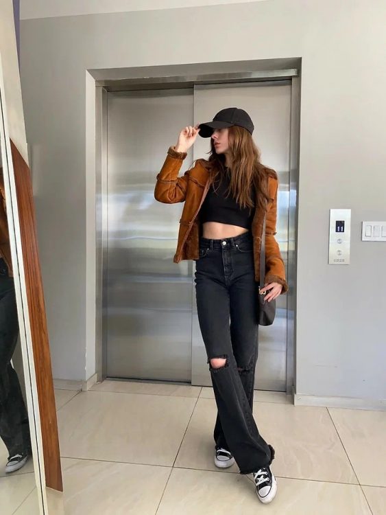 Більше того, немає жодних обмежень і щодо взуття. Широкі штани з деніму однаково гарно виглядають і з кросівками, і з модельками на витончених підборах.
