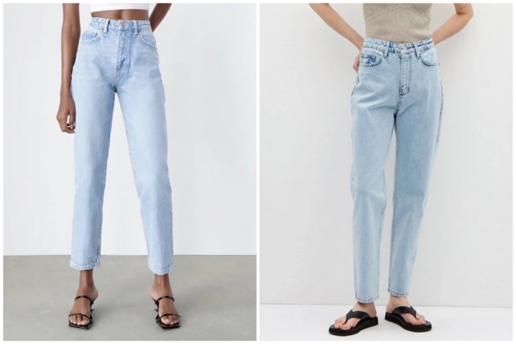 Також сучасною базою стали джинси Mom, які повернулися до нас кілька років тому в якості тренду. Вони посунули скінні, що панували далеко не один рік. Спочатку на контрасті зі скінні вони багатьом здавалися широкими, але все пізнається в порівнянні. Якщо порівняти з подальшими трендами, то на широкі вони ну ніяк не тягнуть.