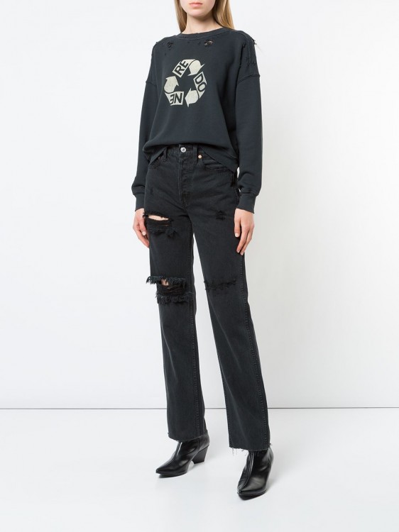 Рвані джинси завжди додають образу зухвалості. Проте, в холодну пору рекомендуємо одягати під низ колготки з принтом. Такий простий прийом допоможе додати родзинки в образ.